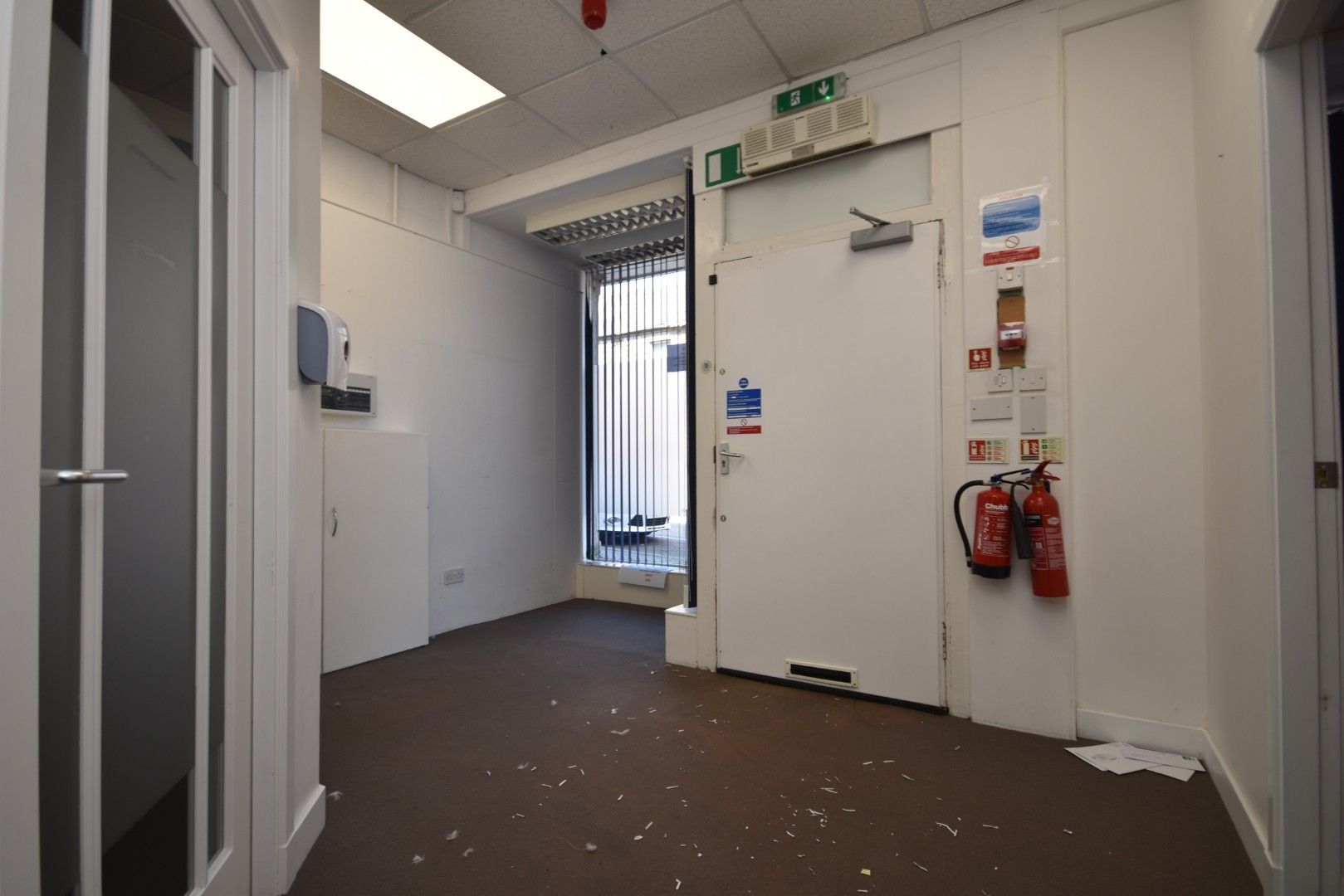 The property has two large display windows, entrance, reception or waiting room, five rooms, meeting area, large open plan kitchen staff area, and WC.
